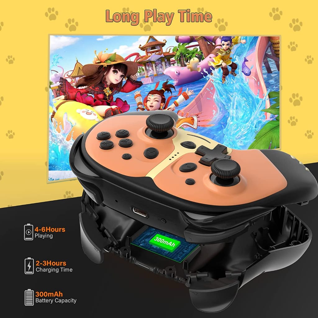 Funções de despertar com um clique, sono automático, prompt de carregamento, aviso de baixa tensão, +/- botão, R/L, X, Y, A, B e controle remoto são totalmente compatíveis. Chip giroscópio embutido de 6 eixos, pode acompanhar a flexibilidade do jogo; a vibração do Motor é dividida em 4 níveis, se você encontrar uma colisão no jogo, fornecerá imediatamente o correspondente Bateria de lítio de 300mAh de bateria muito boa do jogo, dando ao jogo uma experiência muito boa; Bateria de lítio de bateria eficiente embutida de 3,5-4 horas