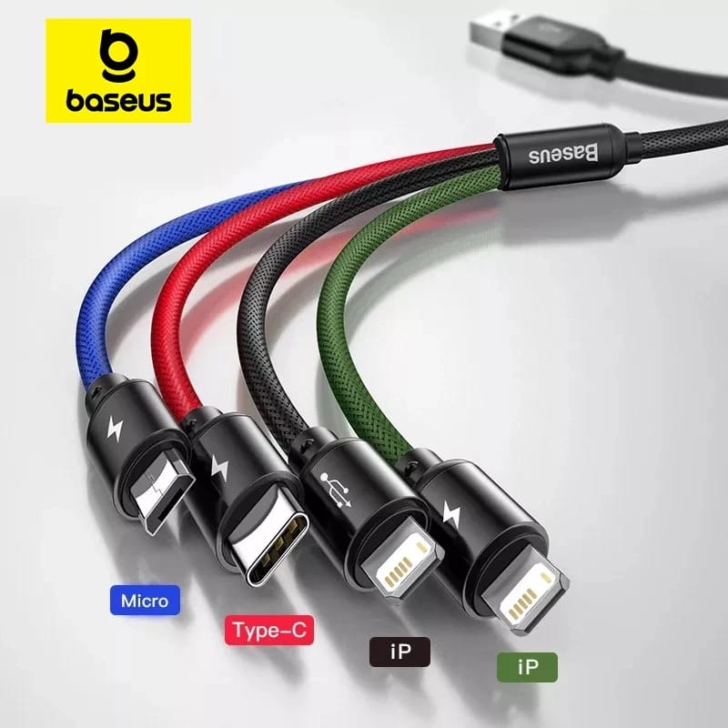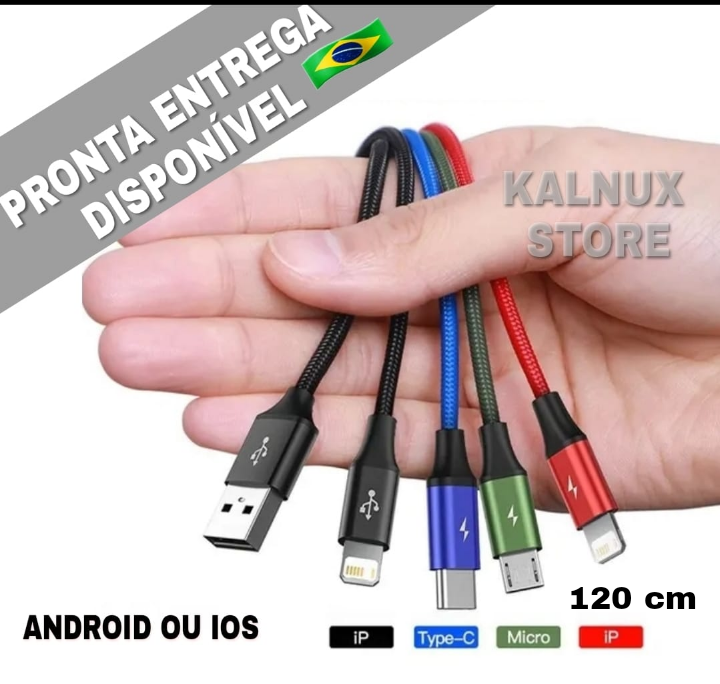 Compatibilidade 4 em 1: Com 4 conexões diferentes suportadas, este cabo é perfeito para quem precisa carregar vários dispositivos.
