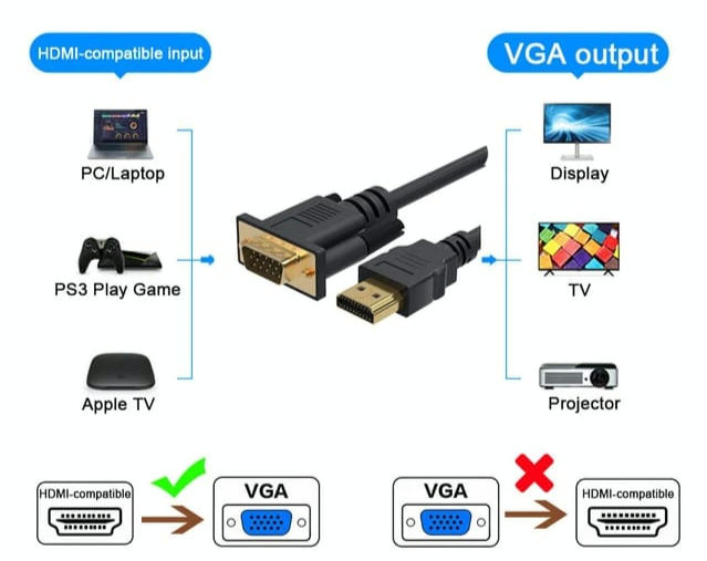 Aplicável: Todos os desktop/laptop e outros dispositivos com porta compatível com HDMI se conectam a dispositivos de exibição, como monitores ou projetores com porta VGA.