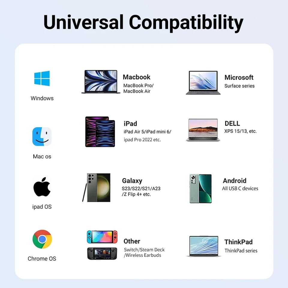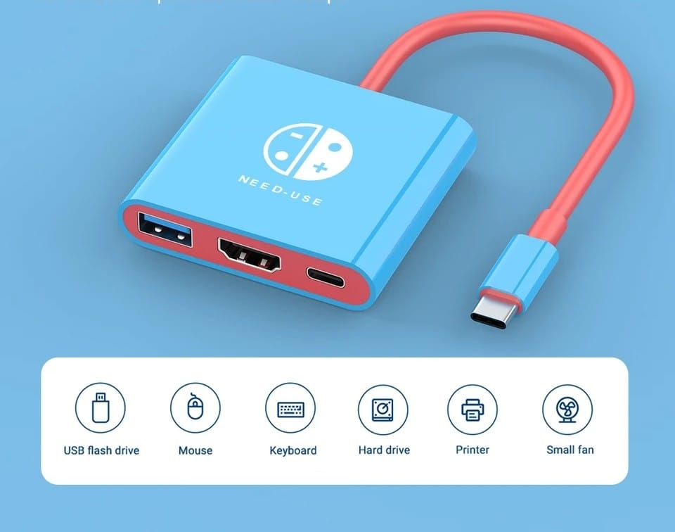 Dockin TV 3 em 1 para Nintendo Switch, Android, Mac, iOS, PC, Adaptador Hub Tipo C