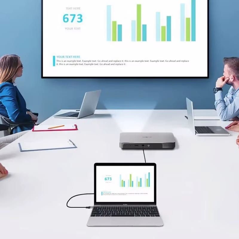 Usando a mais recente interface USB3.1 Type-C para o computador/telefone conectar uma tela grande, ao mesmo tempo que suporta transmissão de áudio e pode ser compatível com outra interface TIPO C com o laptop/telefone.Oferecendo vídeo nítido e vibrante* De acordo com o design padrão USB3.1 e 2.0 compatível, a taxa de transferência de dados pode atingir USB 3.1 – 10 Gbps, velocidade de largura de banda 10 vezes maior que USB 3.0 ou USB 2.0.