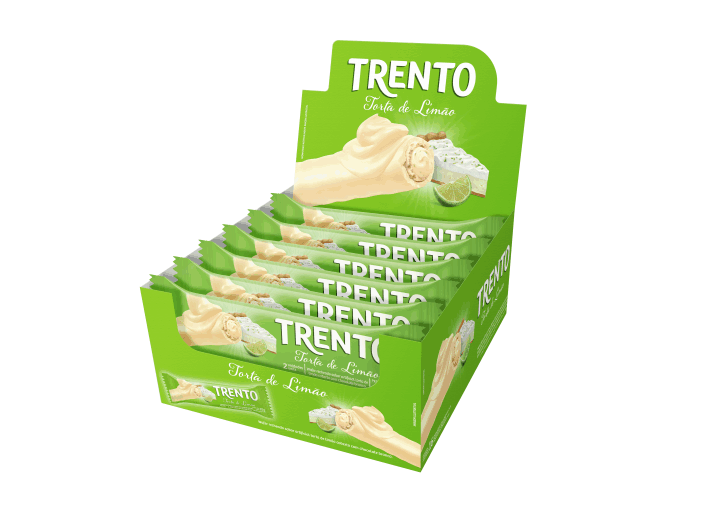 Wafer recheado sabor artificial torta de limão coberto com chocolate branco.Ingredientes: Açúcar, leite em pó integral, farinha de trigo enriquecida com ferro e ácido fólico, manteiga de cacau, gordura vegetal, maltodextrina, soro de leite em pó, sal, óleo vegetal de palma, emulsificantes (lecitina de soja e poliglicerol polirricinoleato), corante caramelo IV, aromatizantes, corantes artificiais (amarelo tartrazina e azul brilhante FCF) e acidulante ácido cítrico. ALÉRGICOS: CONTÉM LEITE E DERIVADOS, DERIVADOS DE TRIGO E DERIVADOS DE SOJA. PODE CONTER AVELÃS, AMENDOIM, AMÊNDOA, AVEIA, CASTANHA-DO-PARÁ, CASTANHA-DE-CAJU, CEVADA, CENTEIO, NOZES E LÁTEX NATURAL. CONTÉM LACTOSE. CONTÉM GLÚTEN.